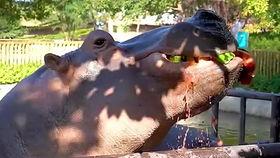 2. 哈密瓜成“飞瓜”:河马吃哈密瓜的速度极快,有时候哈密瓜还没等它吃完,就已经飞到了空中。